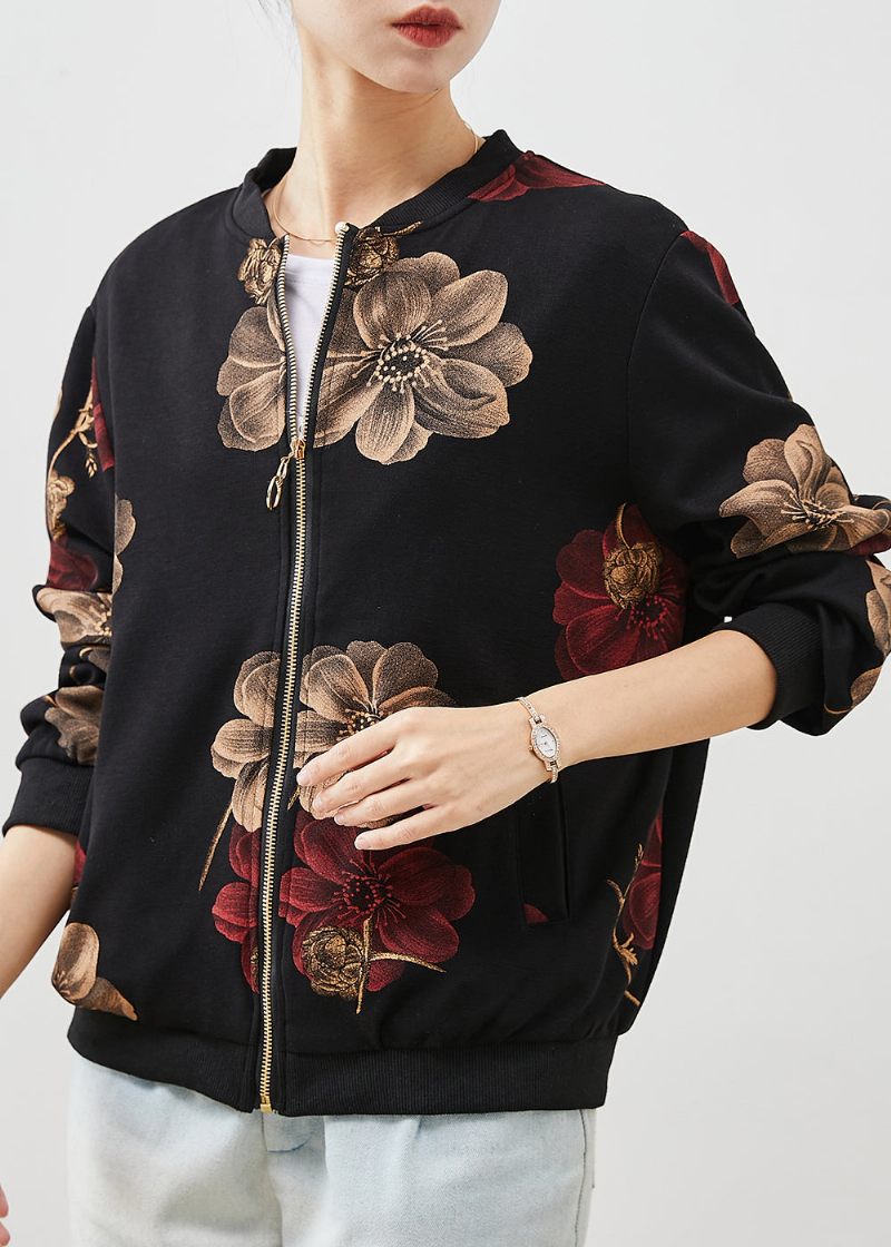 Rött Tryck Bomullsjackor Överdimensionerade Fickor Våren