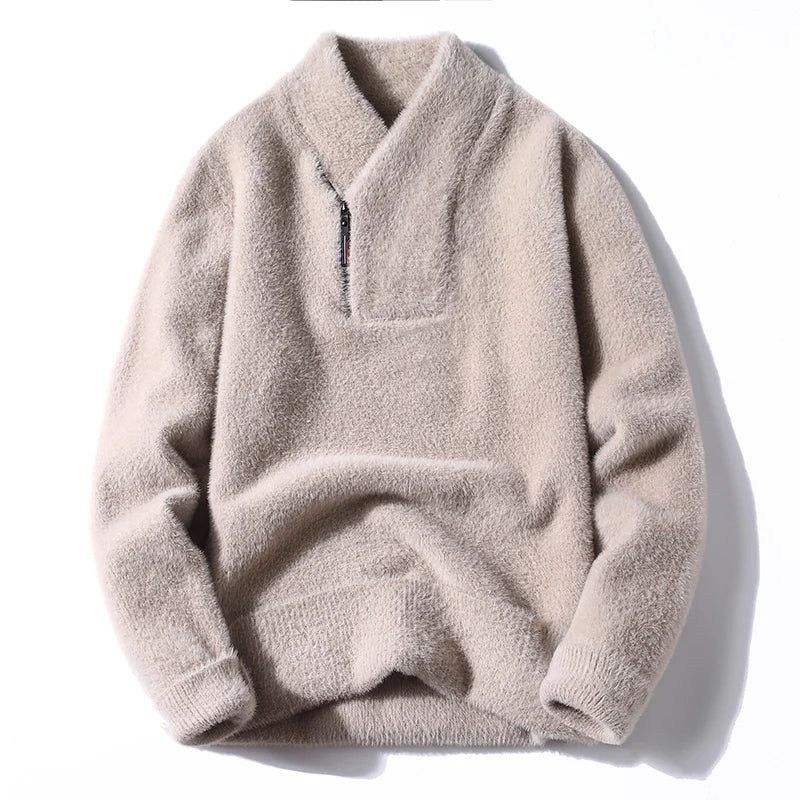 Sammetsförtjockad Tröja För Män Vintertröja Med Bas För Herr Tjocka Stickade Tröjor Varma