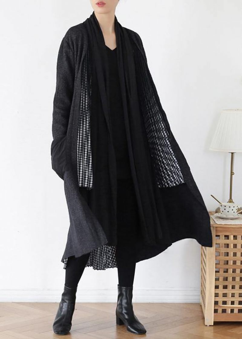 Skön Grå Stickad Kappa Höstmode Patchworkstickad Plagg