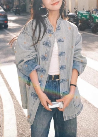 Slim Fit Khaki Naggad Krage Knappfickor Randig Bomull Linnerockar Långärmad