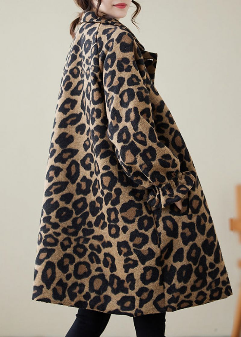 Snygg Kaki Oversized Leopard Print Yllerockar Vinter