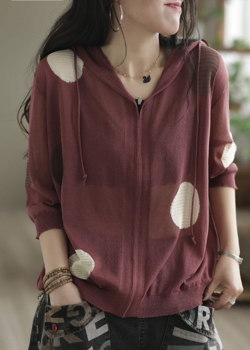 Snygg Mulberry Hooded Dot Print Knit Loose Coat Spring