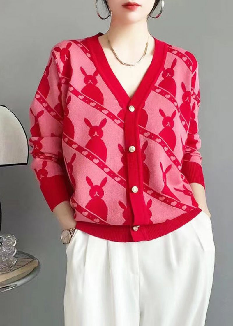 Snygg Rose V-ringad Knapp Jacquard Woolen Cardigan Fall