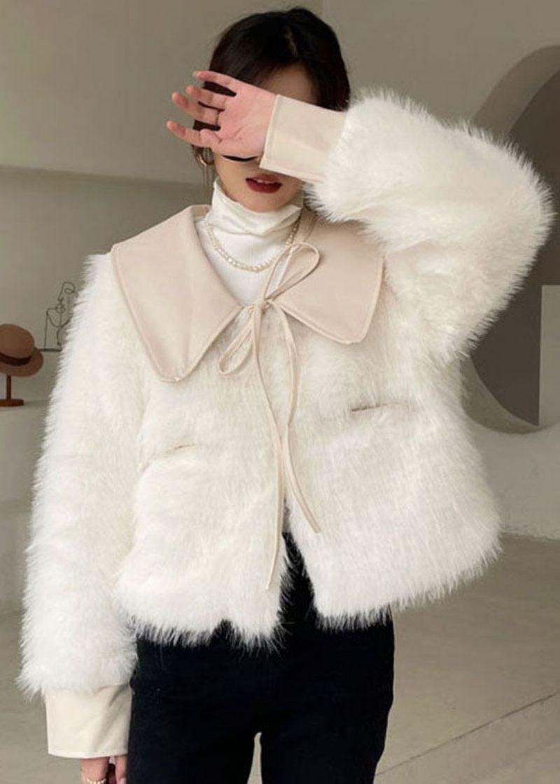 Snygg Vit Peter Pan-krage Tjockt Minkhår Vinterytterkläder