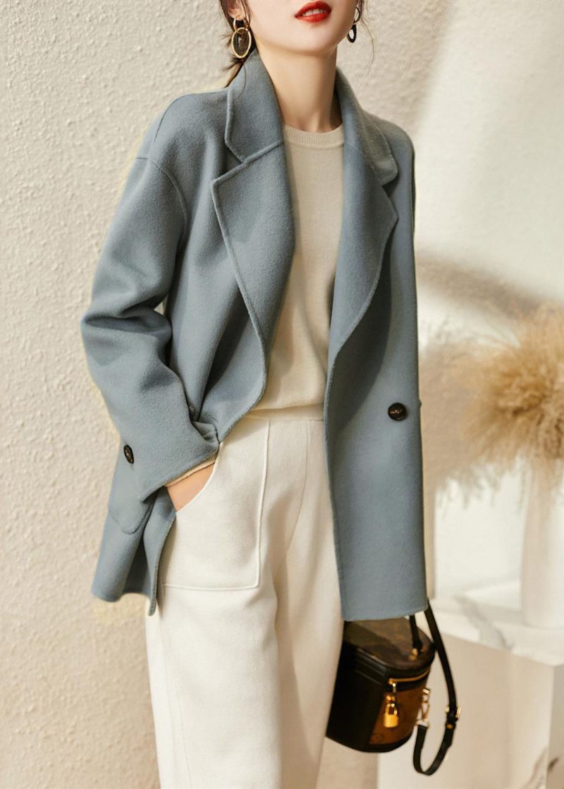 Snygga Ljusblå Peter Pan Krage Fickor Patchwork Yllerockar Höst