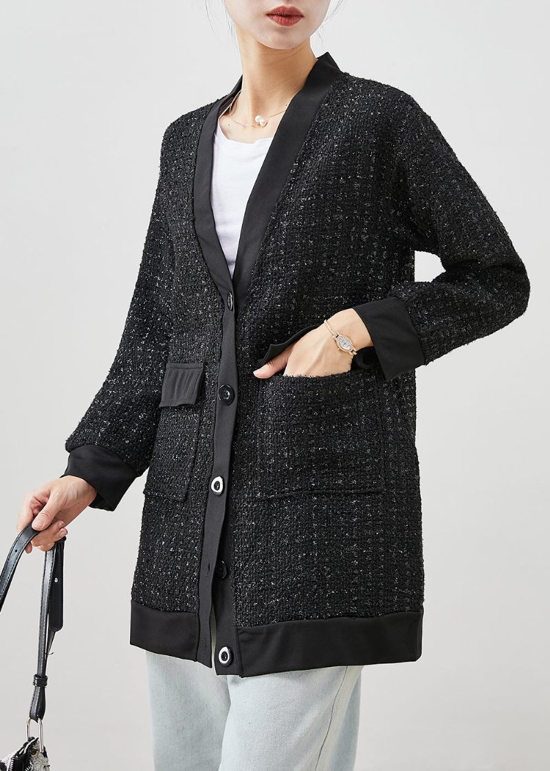 Snygga Svarta V-halsfickor Yllejackor Höst
