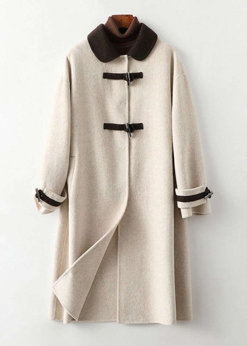 Söt Beige Fyrkantig Krage Knapp Ylle Långa Kappor Höst