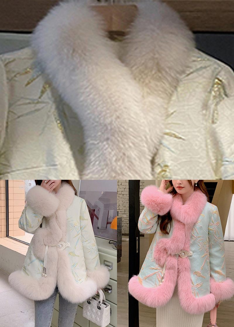 Söt Beige Rävkrage Broderat Läder Och Pälsrockar Vinter