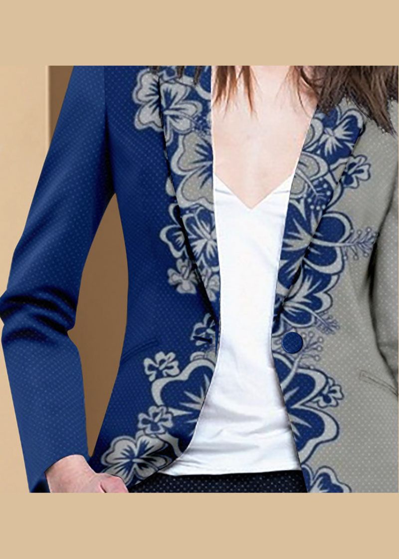 Stil Blå Grå Knapp Peter Pan Kragetryck Västerländsk Klädrock Långärmad
