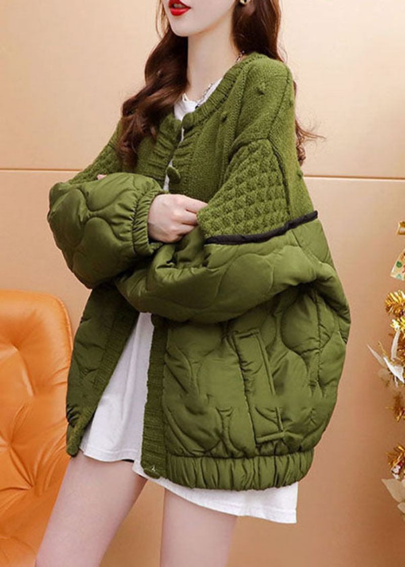 Stil Grön Oversized Bomullsfylld Patchwork Stickad Cardigan Winter