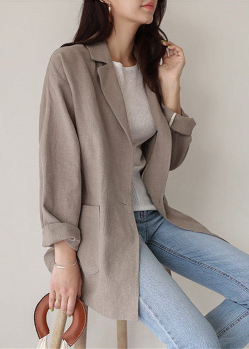 Stil Khaki Peter Pan Kragefickor Linnerockar Vår