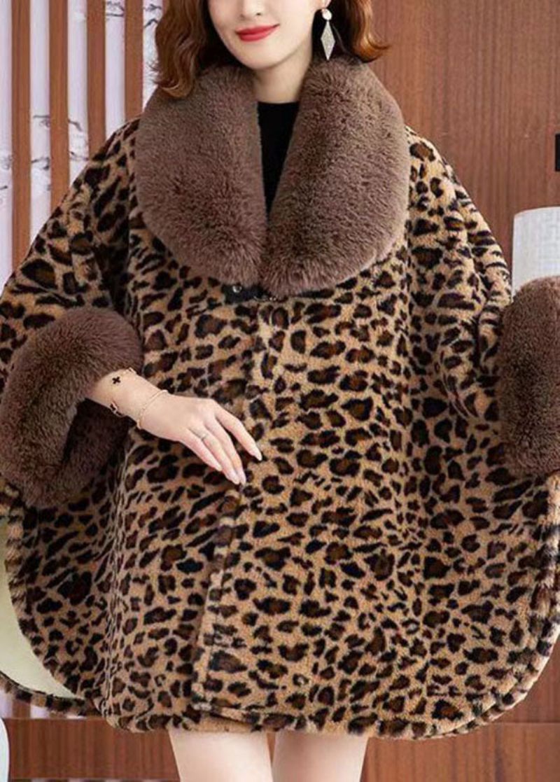 Stil Leopard Peter Pan Krage Patchwork Mink Velvet Coats Vinter