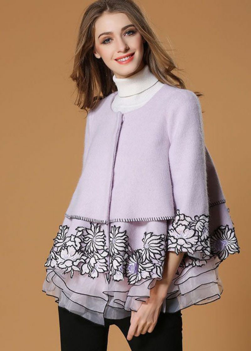 Stil Ljuslila Broderad Organza Patchwork Yllerock Halvärm
