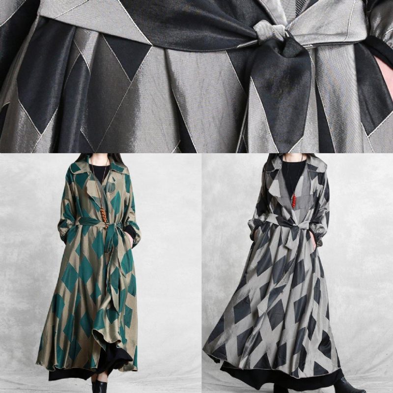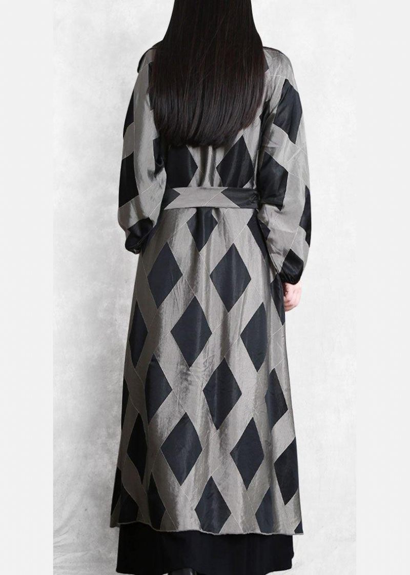 Stil Naggad Knyt Midja Moderockar Dam Grå Rutig Tunikajackor