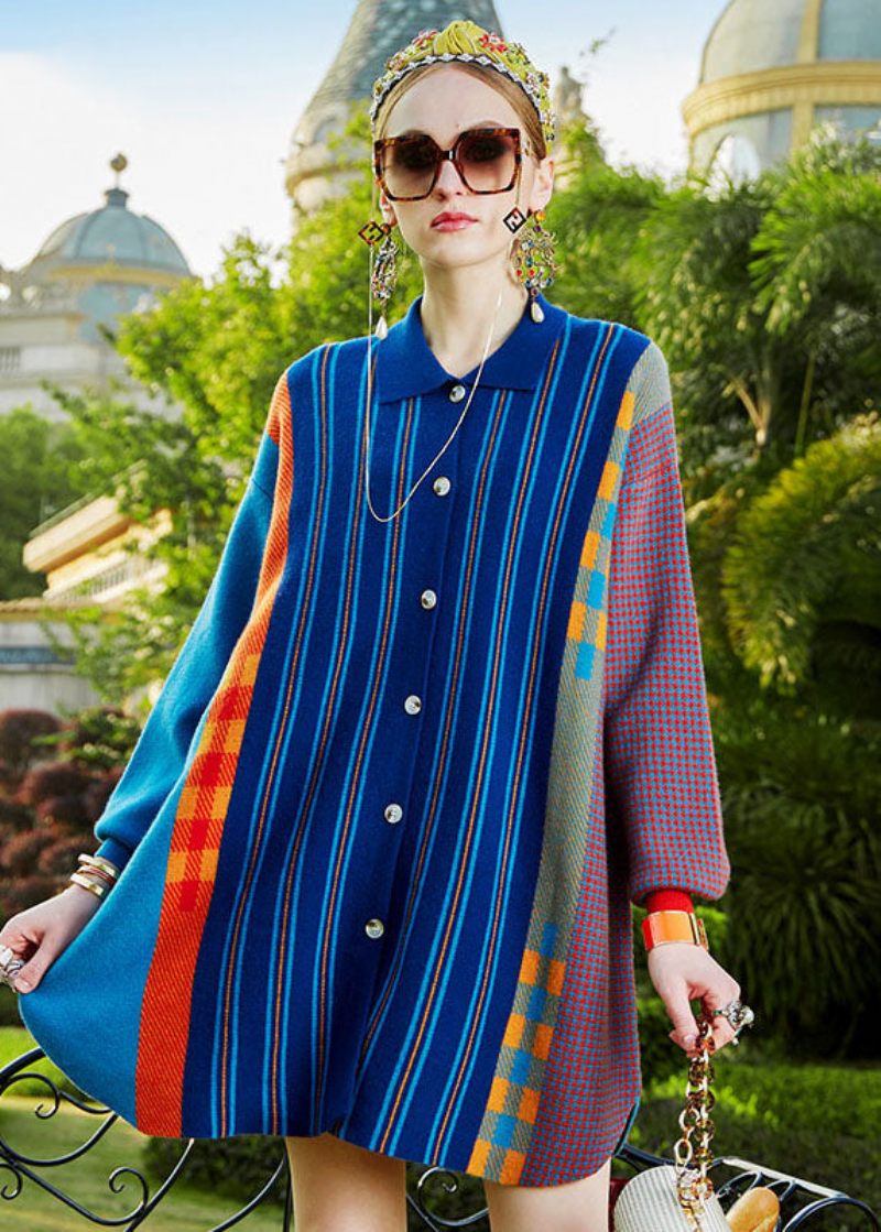 Stil Randig Peter Pan Krage Tryck Knapp Ylle Mid Klänningar Höst