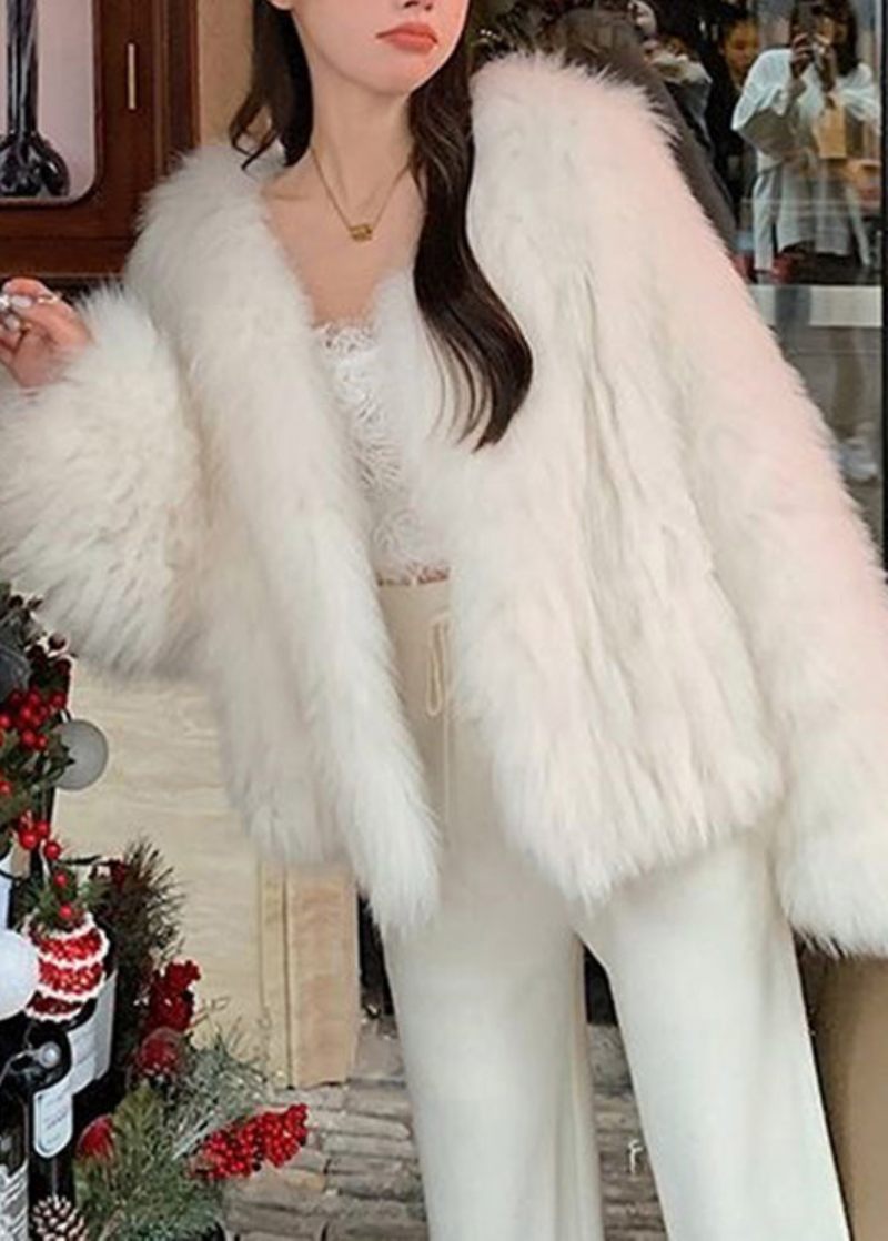 Stil Vit O-hals Mink Velvet Coats Långärmad