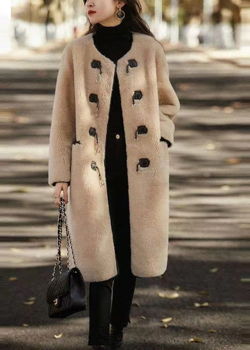 Stil Vit O-halsfickor Knapp Patchwork Ullrock Vinter