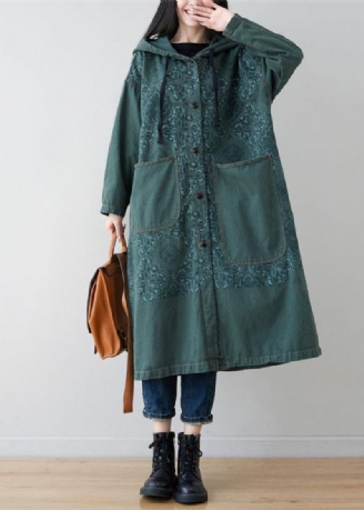 Svart Denim Trench Överdimensionerade Fickor Batwing Sleeve