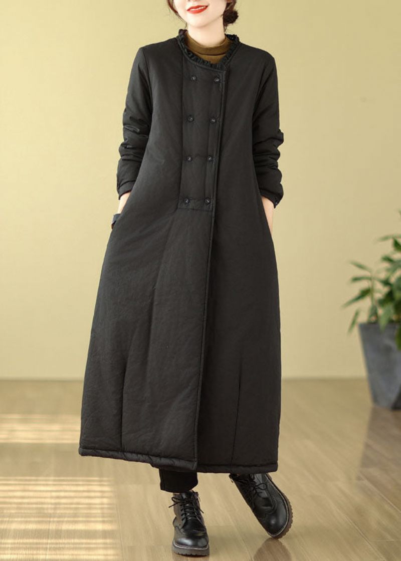 Svart O-halsad Tjock Maxi Parkarock Långärmad