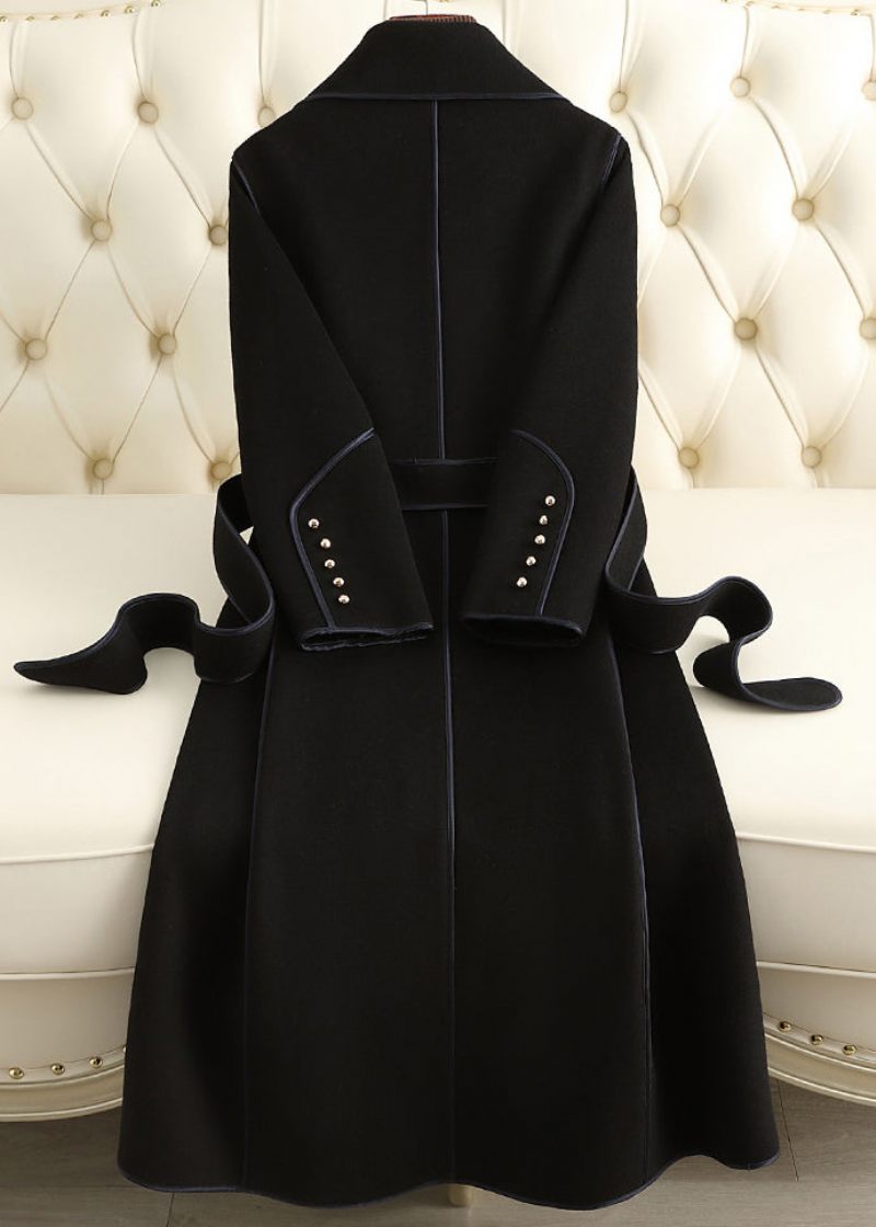Svart Skårad Knapp Ylle Långa Kappor Höst