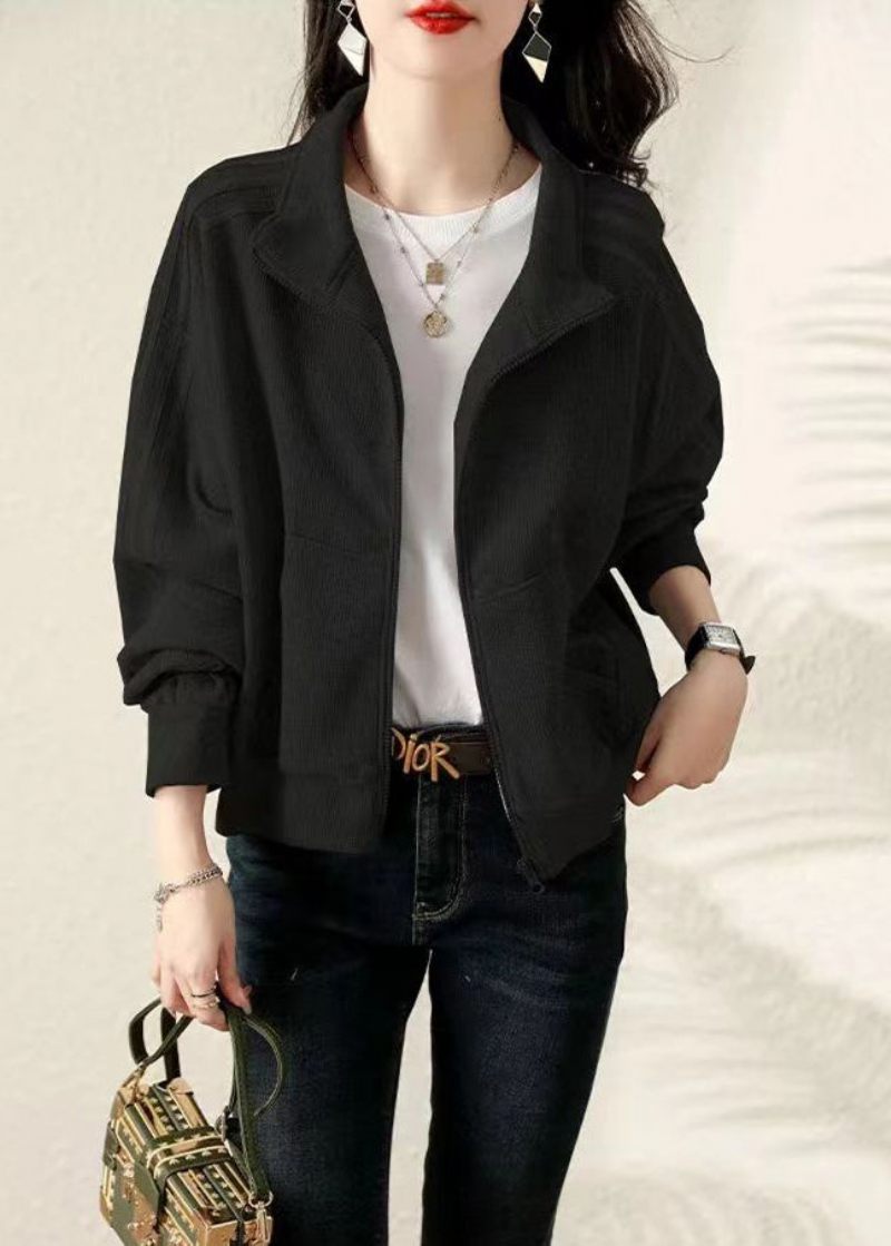 Svarta Patchwork Bomullsjackor Oversized Dragkedja Fall