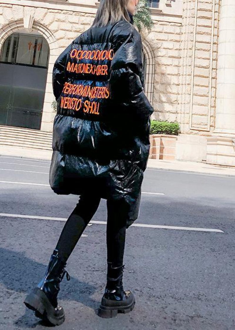Tjock Svart Parkas För Kvinnor Plus Size Klädstativ Krage Patchwork Vinterkappor
