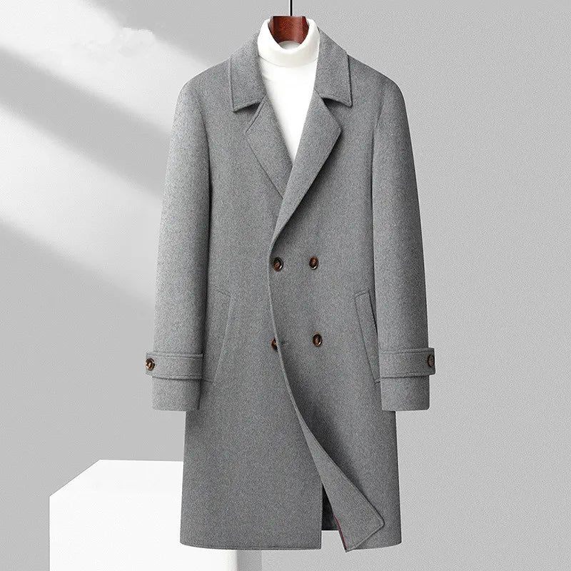 Tjock Trenchcoat I Ylle För Män Dubbelknäppt Lång Kappa Höst Och Vinter