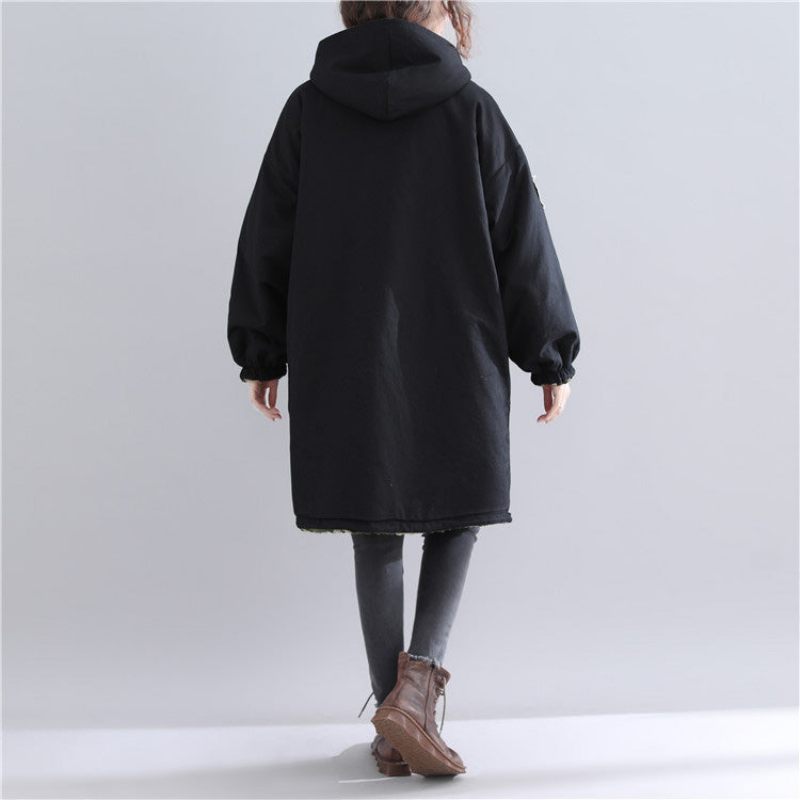 Tjocka Svarta Vinterparkas Plus Size Snöjackor Med Luva Fina Fickor Vinterkappor