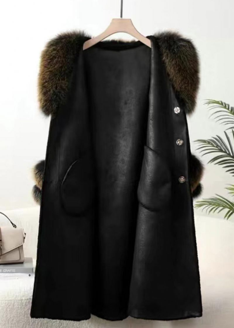 Toppkvalitet Black Fox Krage Fickor Knyt Midja Kashmirrockar Vinter