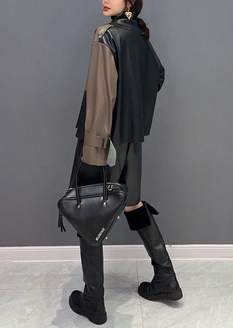 Unik Colorblock Notched Patchwork Faux Läderrock Spring