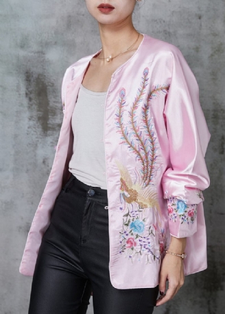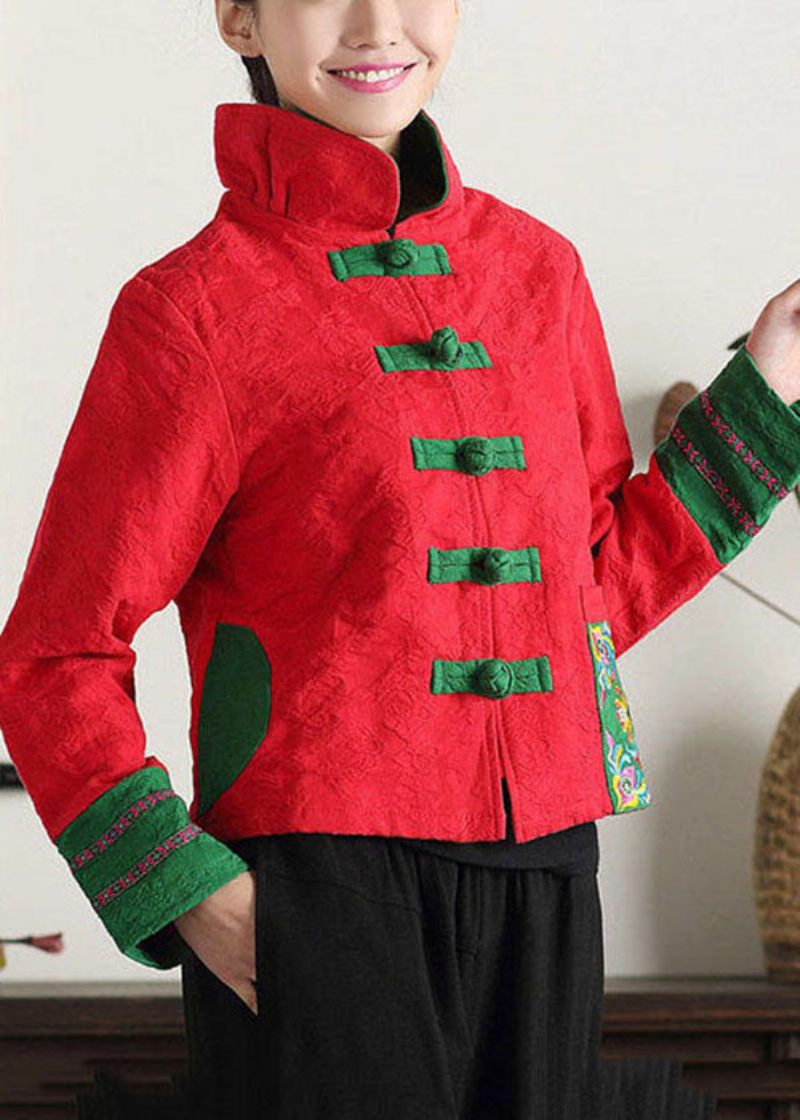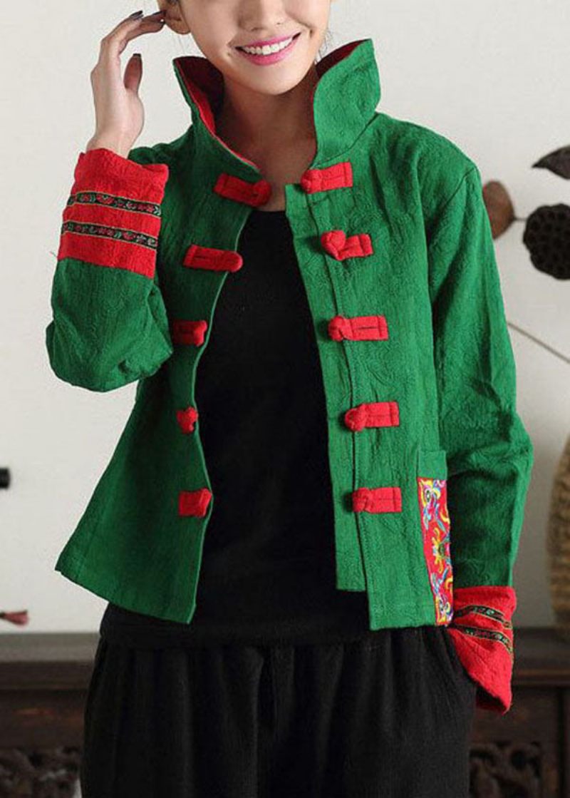 Unik Grön Stativkrage Broderad Patchwork Bomull I Kinesisk Stil Kappor Vår