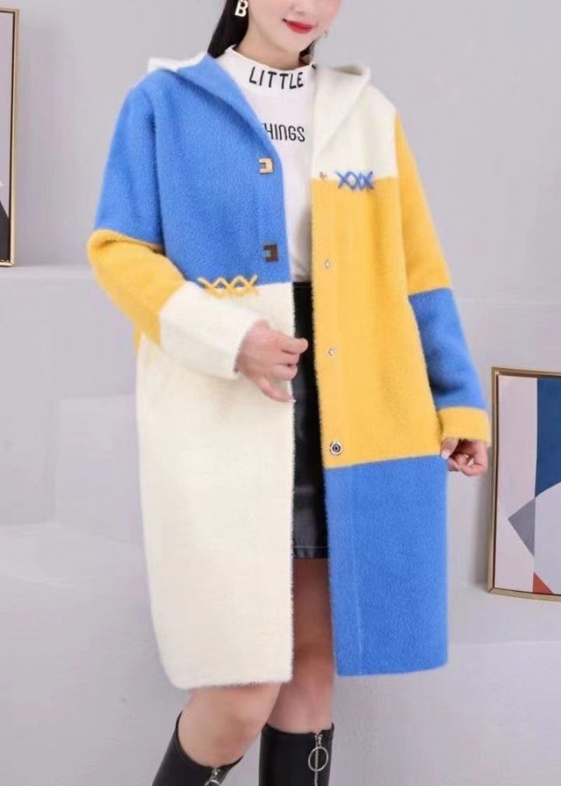 Unika Kaffehuvfickor Patchwork Minkhårstickade Kappor Höst
