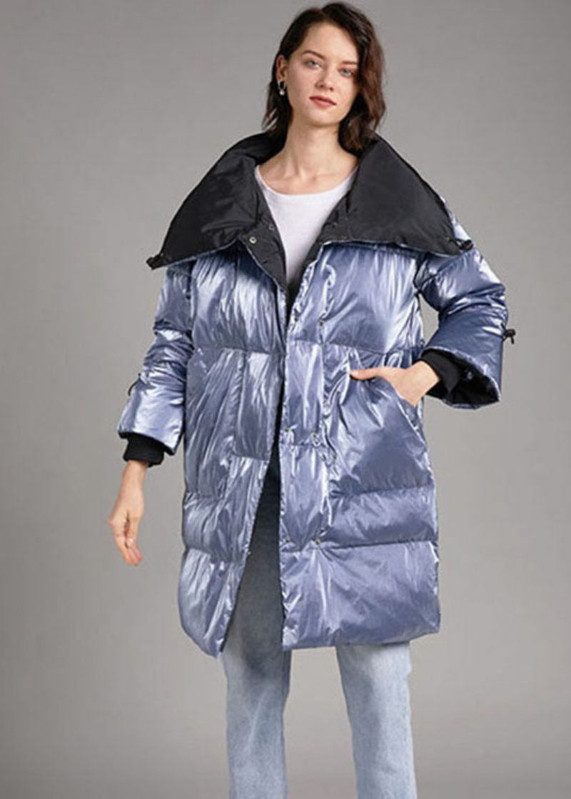Unika Silver Grå Stativ Krage Fickor Slim Fit Vinter Duck Down Coat