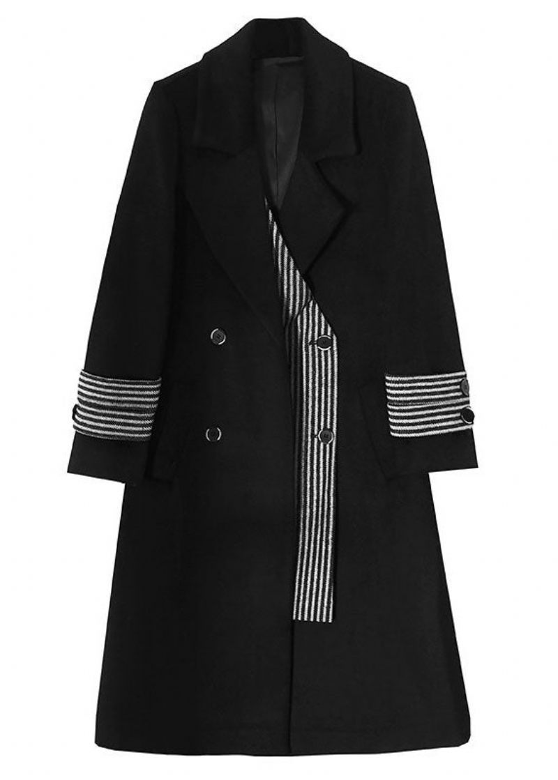 Unika Svarta Peter Pan Krage Fickor Randiga Lapptäcke Yllerockar Våren