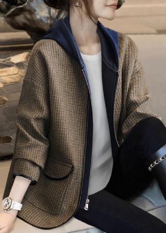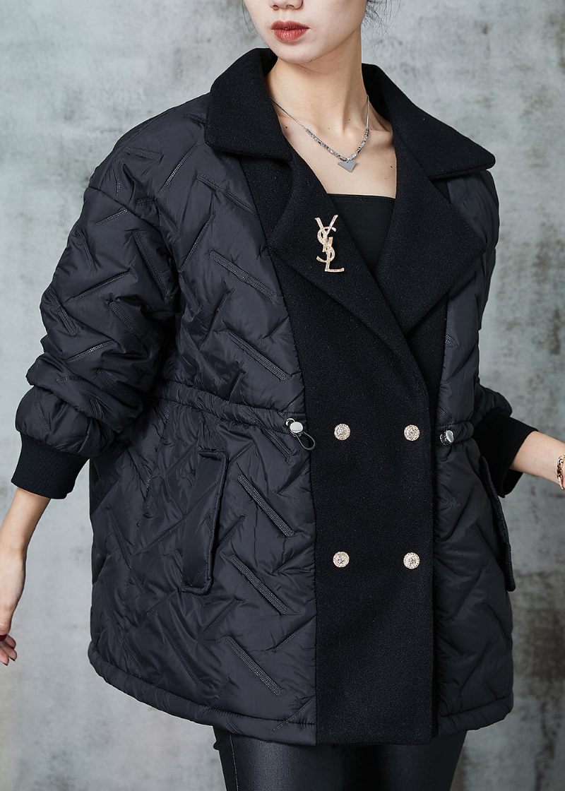 Vacker Svart Dubbelbröst Patchwork Fin Bomullsfylld Jacka Vår