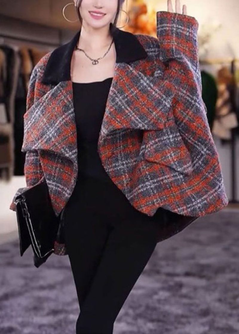 Vackra Pläd Peter Pan Krage Fickor Yllerockar Långärmad