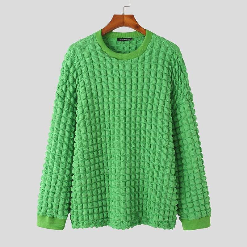 Välsittande Toppar Herr Solid Jacquard Snygga Man Bekväma Långärmade T-shirts