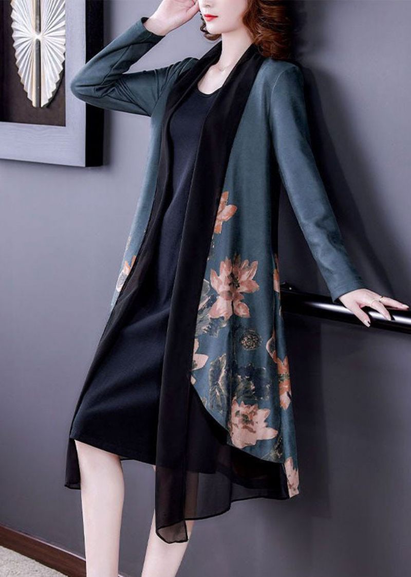 Vintage Blå Asymmetrisk Tyll Patchwork Lösa Cardigans Långärmade