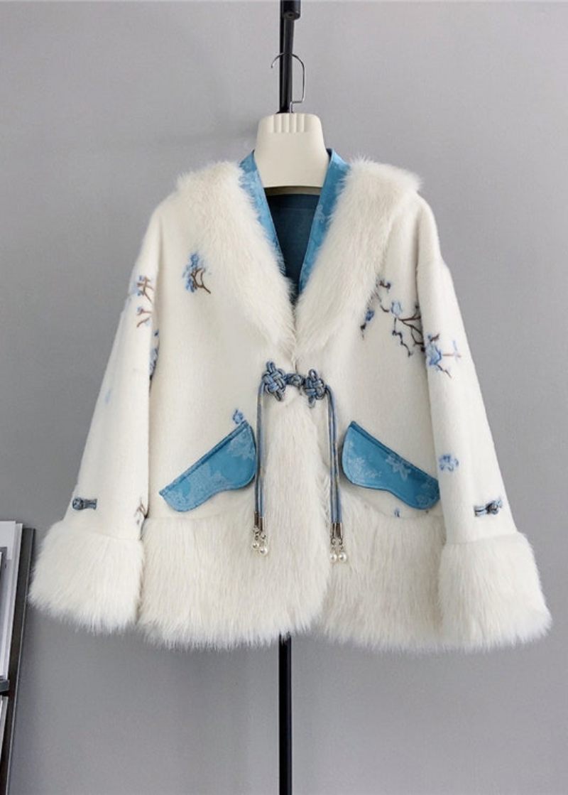 Vintage Blå V-hals Tofsad Kinesisk Knapp Ull Mink Cashmere Winter