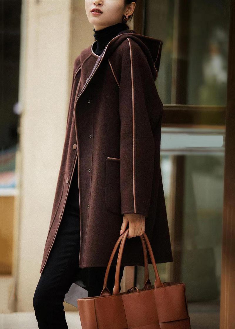 Vintage Brun Hooded Button Fickor Woolen Coat Fall
