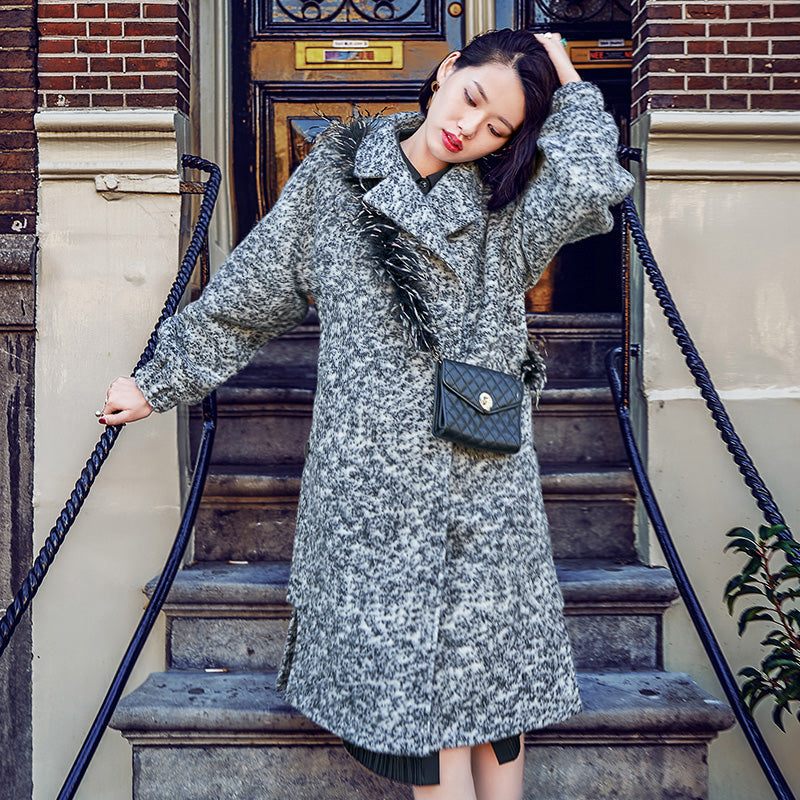 Vintage Grå Ullkappa Löst Sittande Naggad Lång Kappa Sida Öppen