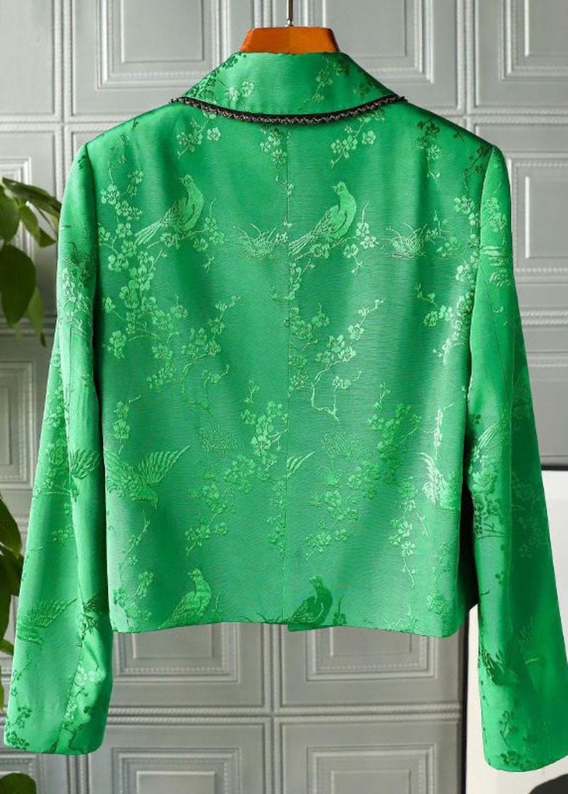 Vintage Grön Peter Pan Krage Kinesisk Knapptryck Patchwork Sidenrockar Våren