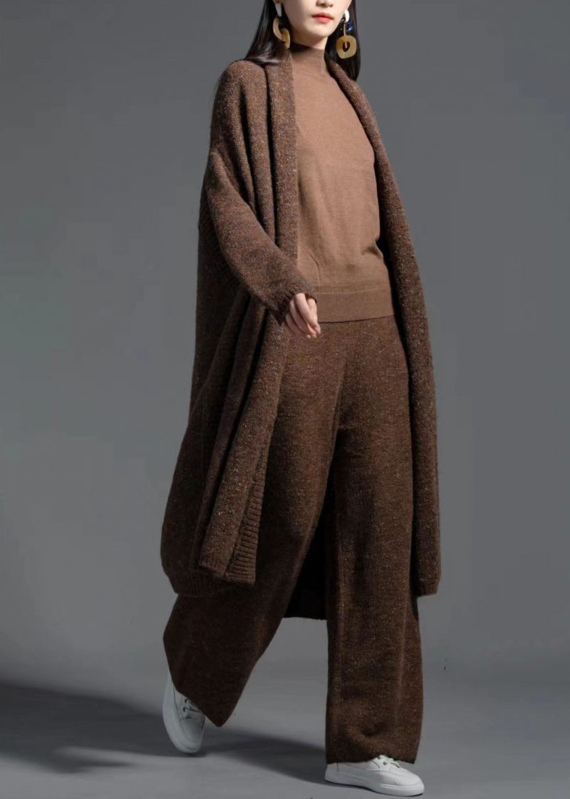 Vintage Kaffe V-hals Patchwork Ull Stickning Cardigan Spring