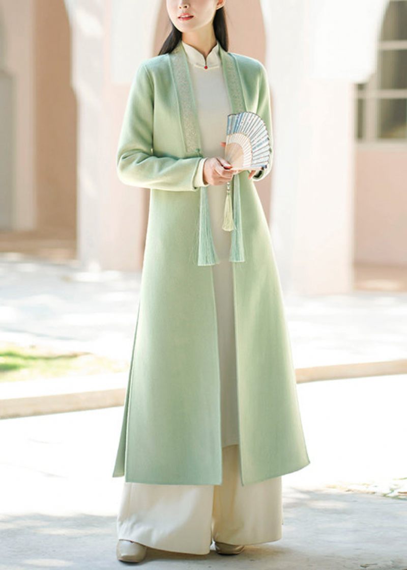 Vintage Ljusgröna Tofsfickor Sidoöppen Yllerock Höst