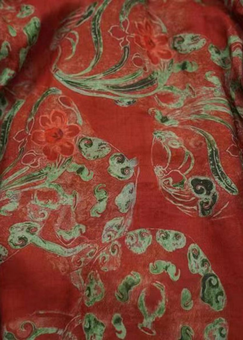 Vintage Orange Tryck Kinesisk Knapp Fin Bomull Fyllda Kappor Vinter