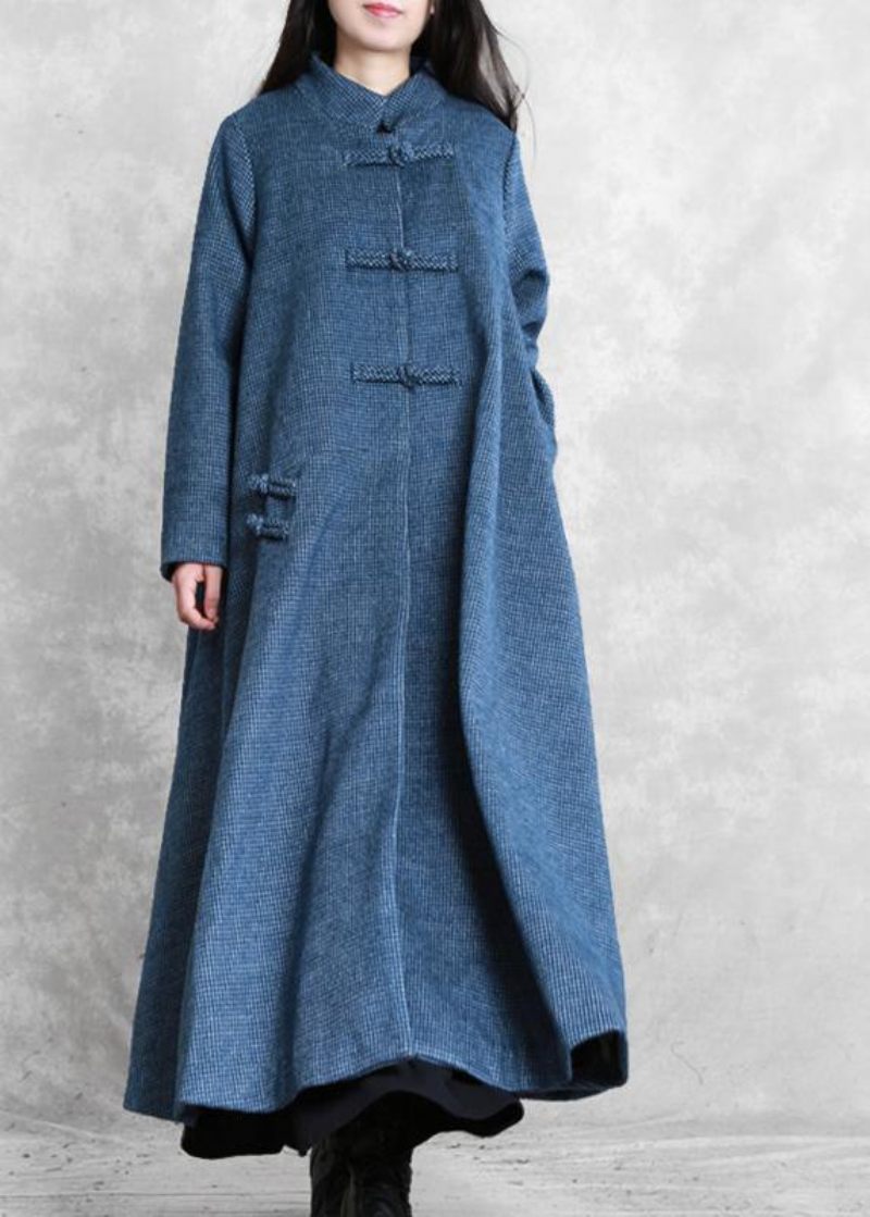 Vintage Plus Size Jackor & Kappor Blå Stativkrage Asymmetrisk YllerockDenna Klänning Är Gjord Av Bomull Eller Linnetyg, Mjuk Och Andas.