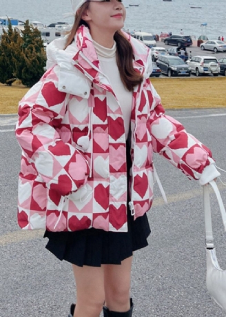 Vintage Rosa O-halstryck Fin Bomullsfylld Kappor Långärmad
