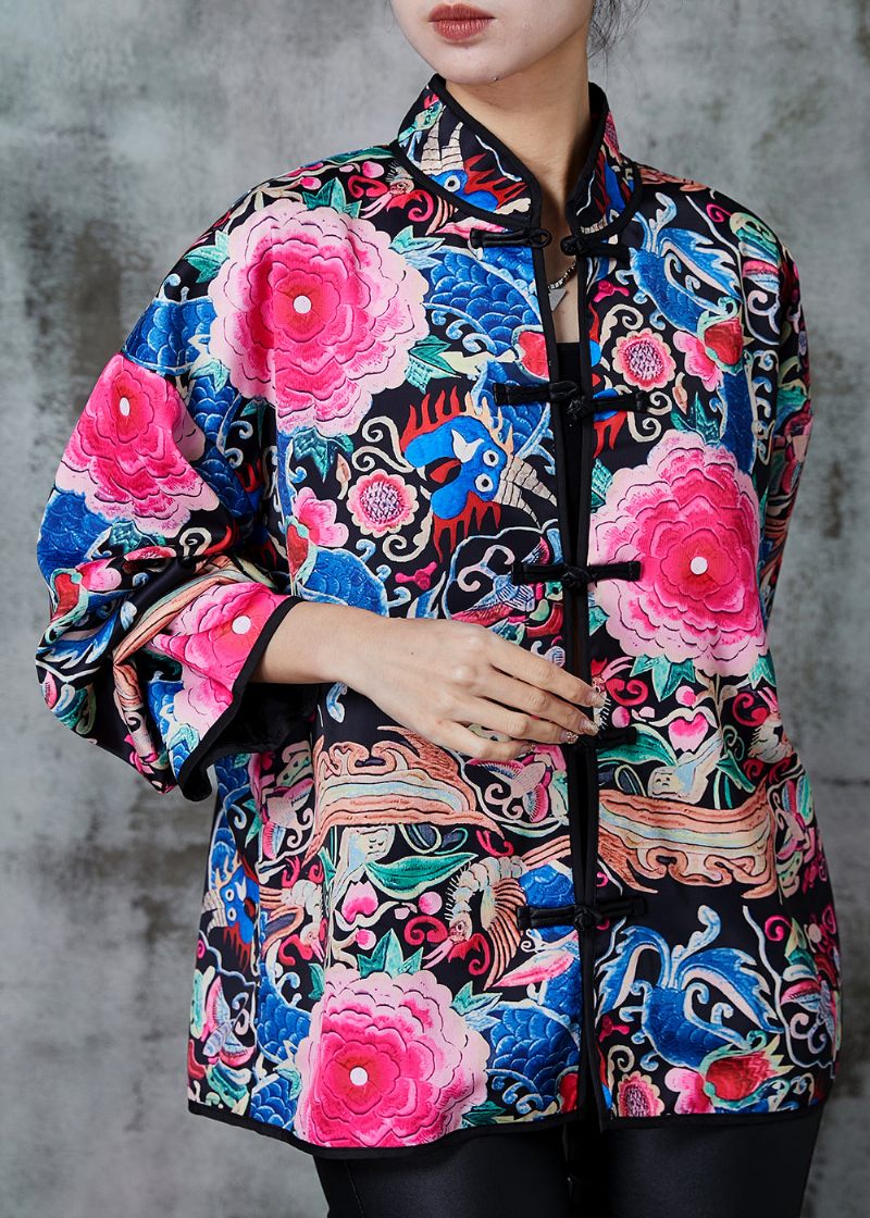 Vintage Svart Broderade Silke Kappor I Kinesisk Stil Vår