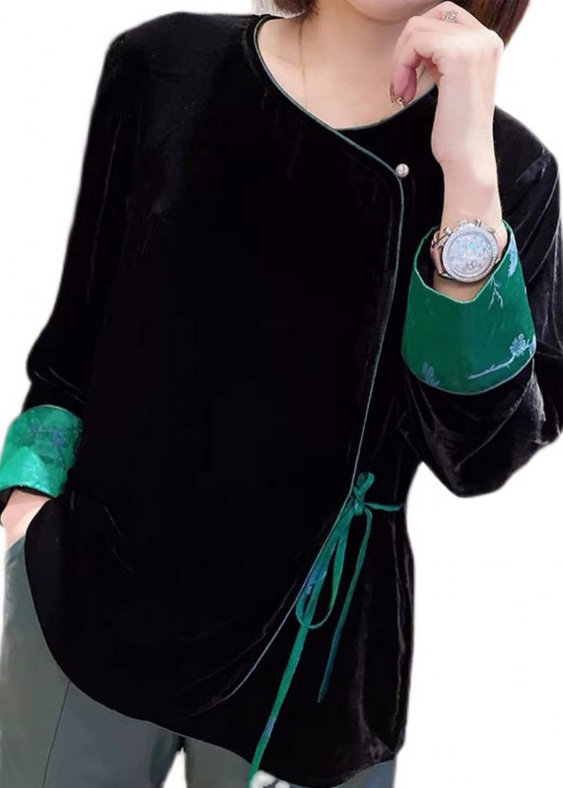 Vintage Svart O-ringad Midja Patchwork Velourrock Långärmad