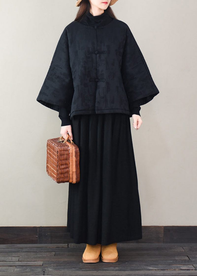Vintage Svart Överdimensionerad Jacquard Fin Bomullsfylld Pufferjacka Vinter